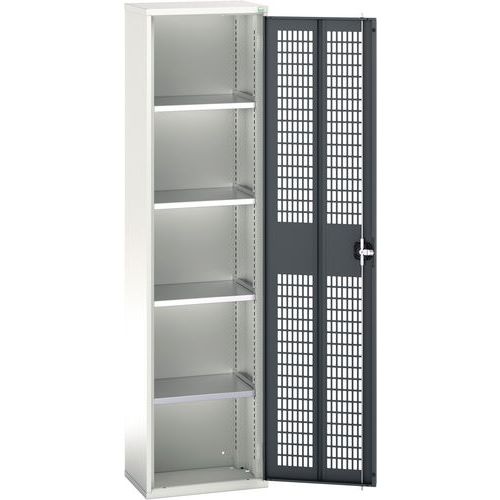 Szafka warsztatowa z półkami Bott Verso, drzwi druciane, 200 x 52,5 x 35 cm, 4 półki, szaro-antracyt