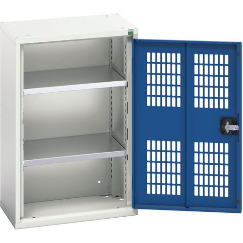 Szafka warsztatowa z półkami Bott Verso, drzwi druciane, 80 x 52,5 x 35 cm, 2 półki, szaro-niebieski