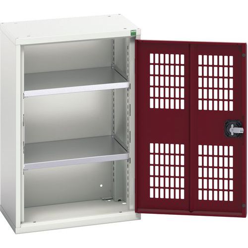 Szafka warsztatowa z półkami Bott Verso, drzwi druciane, 80 x 52,5 x 35 cm, 2 półki, szaro-czerwony