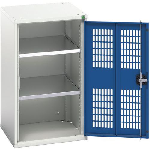 Szafka warsztatowa z półkami Bott Verso, drzwi druciane, 90 x 52,5 x 55 cm, 2 półki, szaro-niebieski