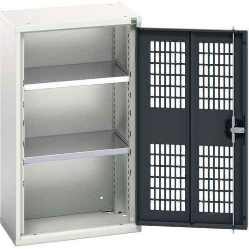 Szafka warsztatowa z półkami Bott Verso, drzwi druciane, 90 x 52,5 x 35 cm, 2 półki, szaro-antracyt