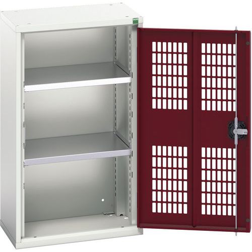 Szafka warsztatowa z półkami Bott Verso, drzwi druciane, 90 x 52,5 x 35 cm, 2 półki, szaro-czerwony