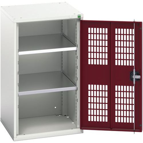 Szafka warsztatowa z półkami Bott Verso, drzwi druciane, 90 x 52,5 x 55 cm, 2 półki, szaro-czerwony