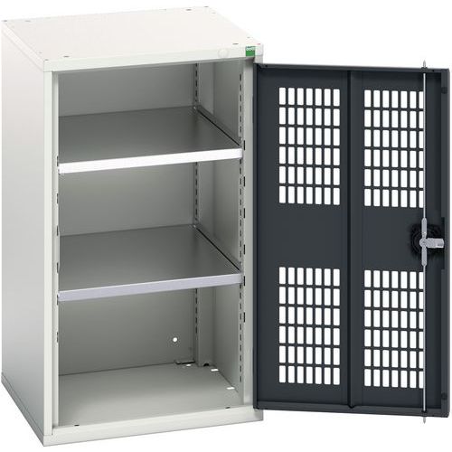 Szafka warsztatowa z półkami Bott Verso, drzwi druciane, 90 x 52,5 x 55 cm, 2 półki, szaro-antracyt