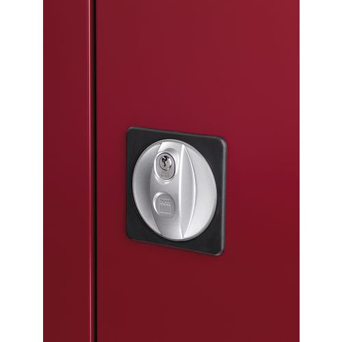 Metalowe szafy warsztatowe z drzwiami przesuwnymi nadają się do miejsc o ograniczonej przestrzeni. Drzwi przesuwne wraz z uchwytami i zamkiem. Półki ocynkowane o nośności 100 kg, z możliwością regulacji wysokości co 25 mm. Spawana konstrukcja stalowa, powierzchnia malowana proszkowo .