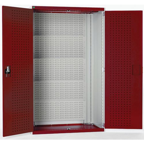- Tylna ściana z perforacją do zawieszania plastikowych pudełek oraz wewnętrzna strona drzwi do mocowania uchwytów na narzędzia.