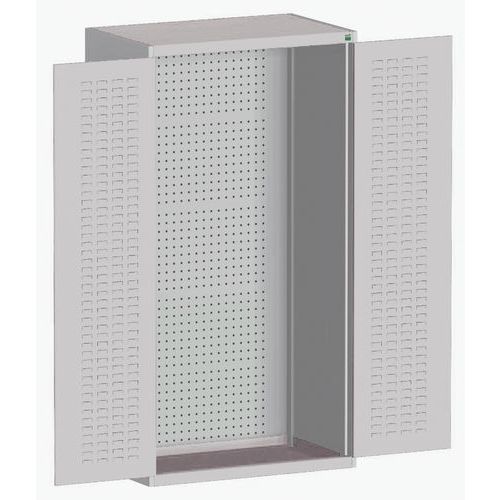 - Ściana tylna z perforacją do mocowania uchwytów na narzędzia oraz wewnętrzna strona drzwi do zawieszenia skrzynek plastikowych.