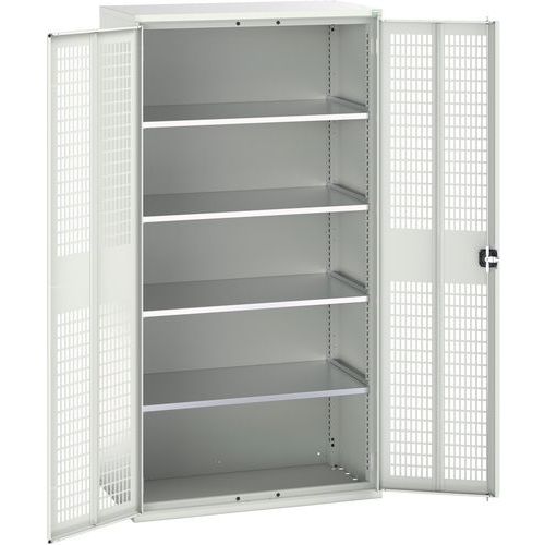 Szafka warsztatowa z półkami Bott Verso, drzwi druciane, 4 półki, 200 x 105 x 55 cm, szaro-szara