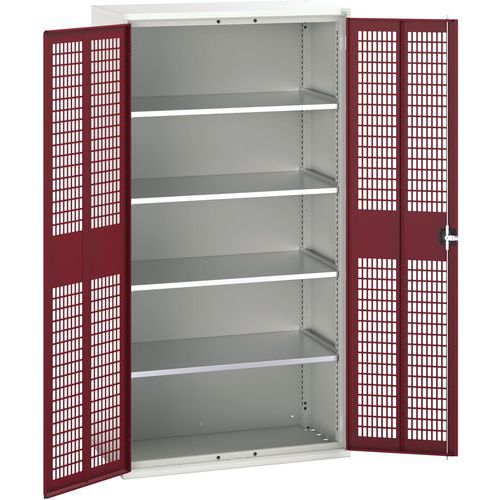 Szafka warsztatowa z półkami Bott Verso, drzwi druciane, 4 półki, 200 x 105 x 55 cm, szaro-czerwona