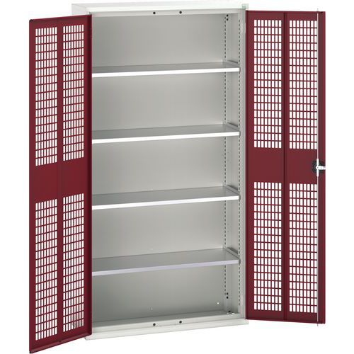 Szafka warsztatowa z półkami Bott Verso, drzwi druciane, 4 półki, 200 x 105 x 35 cm, szaro-czerwony