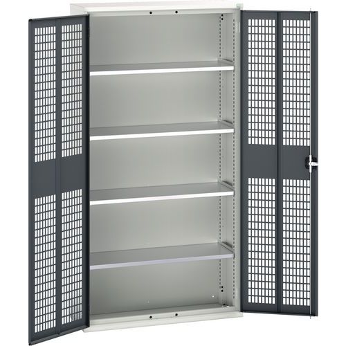 Szafy warsztatowe z półkami i drzwiami drucianymi Bott Verso, wysokość 200 cm