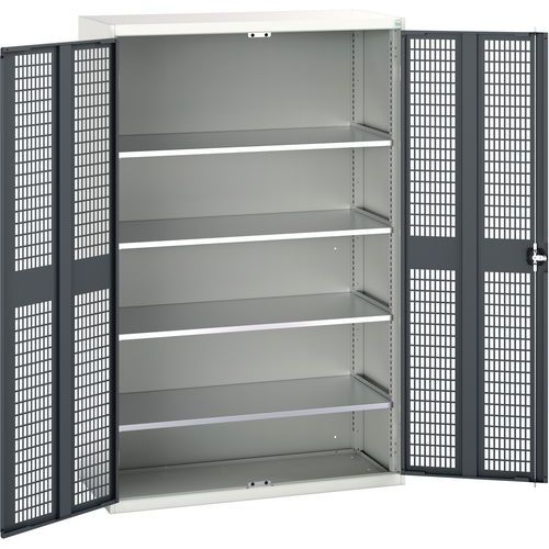 Szafka warsztatowa z półkami Bott Verso, drzwi druciane, 4 półki, 200 x 130 x 55 cm, szaro-antracyt
