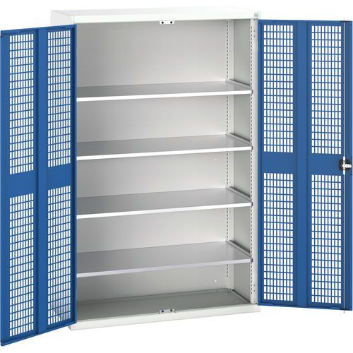 Szafka warsztatowa z półkami Bott Verso, drzwi druciane, 4 półki, 200 x 130 x 55 cm, szaro-niebieski