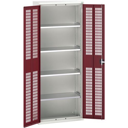 Szafka warsztatowa z półkami Bott Verso, drzwi druciane, 4 półki, 200 x 80 x 35 cm, szaro-czerwony