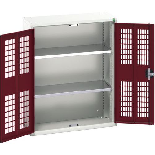 Szafka warsztatowa z półkami Bott Verso, drzwi druciane, 100 x 80 x 35 cm, 2 półki, szaro-czerwony