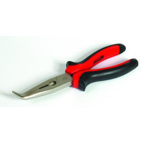 Wygięte szczypce wydłużone w dwóch długościach. Dwukolorowa, ergonomiczna rękojeść o zmiękczonej, antypoślizgowej powierzchni z gumy termoplastycznej. Mogą być używane do prac pod napięciem do 1000 V AC i 1500 V DC.