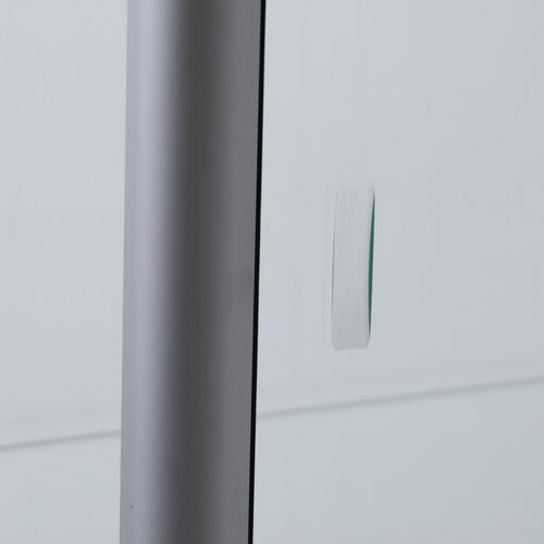 Szklana gablota do prezentacji towarów. Wyposażona w cztery regulowane szklane półki. Drzwi skrzydłowe wykonane z hartowanego szkła o grubości. 5 mm z zamkiem. 2x oświetlenie LED (ciepły biały) w górnej szynie. Wyjście kablowe pod spodem. Regulowane nóżki do poziomowania. Maks. obciążenie półki (kg) : 7 kg