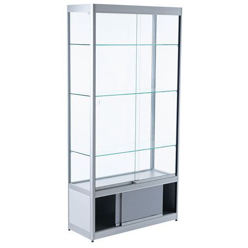 Szklane gabloty produktowe z obszarem do przechowywania przedmiotów Manutan Expert, 200 x 100 x 40 cm