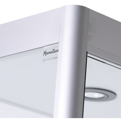 Szklana gablota produktowa z obszarem do przechowywania przedmiotów Manutan Expert, 200 x 100 x 40 cm, srebrna Szklana gablota produktowa z obszarem do przechowywania przedmiotów Manutan Expert, 200 x 100 x 40 cm, srebrna