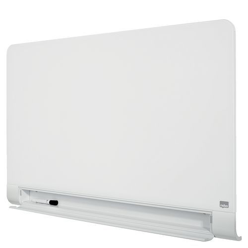 Szklane tablice Nobo Diamond ze schowaną przegródką na markery.