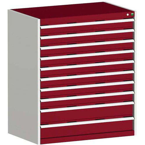 Warsztatowa szafka z szufladami Bott Cubio, 120 x 105 x 65 cm, 10 szuflad, szaro-czerwona