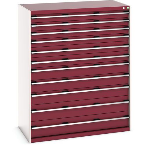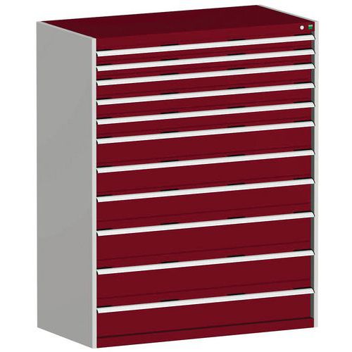 Warsztatowa szafka z szufladami Bott Cubio, 160 x 130 x 75 cm, 11 szuflad, szaro-czerwona