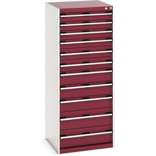 Warsztatowa szafka z szufladami Bott Cubio, 160 x 65 x 65 cm, 11 szuflad, szaro-czerwona