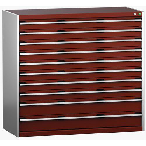 Szafka warsztatowa z szufladami Bott Cubio 200, 120 x 130 x 65 cm, 10 szuflad, szaro-czerwona