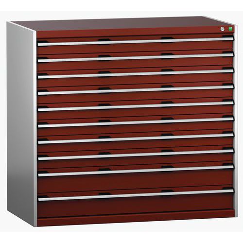 Warsztatowa szafka z szufladami Bott Cubio 200, 120 x 130 x 75 cm, 10 szuflad, szaro-czerwona