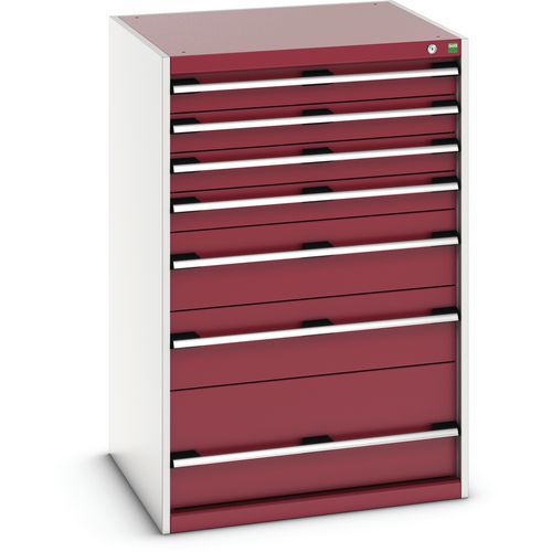 Warsztatowa szafka z szufladami Bott Cubio 200, 120 x 80 x 75 cm, 7 szuflad, szaro-czerwona