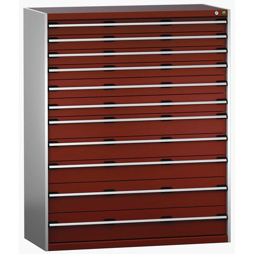 Szafka warsztatowa z szufladami Bott Cubio 200, 160 x 130 x 65 cm, 11 szuflad, szaro-czerwona