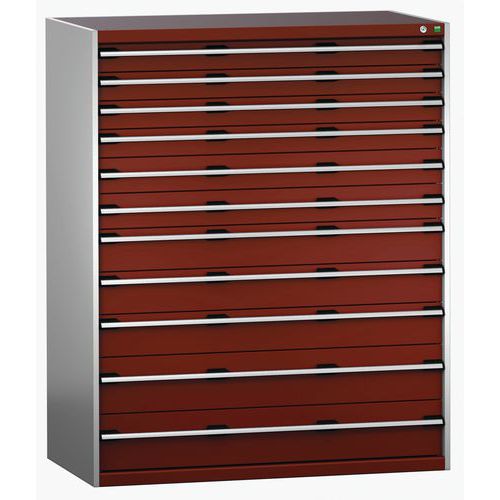 Szafka warsztatowa z szufladami Bott Cubio 200, 160 x 130 x 75 cm, 11 szuflad, szaro-czerwona