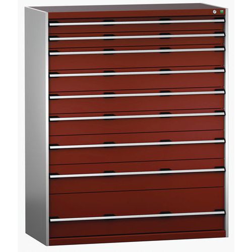 Szafka warsztatowa z szufladami Bott Cubio 200, 160 x 130 x 65 cm, 9 szuflad, szaro-czerwona