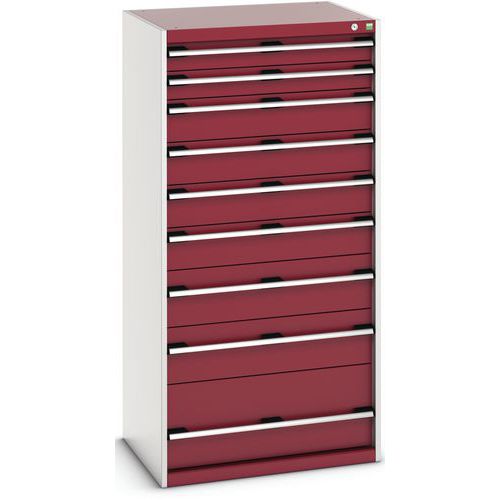 Warsztatowa szafka z szufladami Bott Cubio 200, 160 x 80 x 65 cm, 9 szuflad, szaro-czerwona