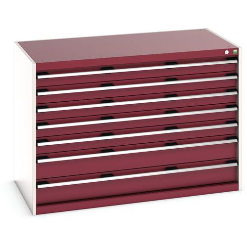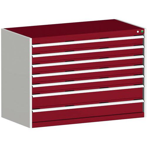 Szafka warsztatowa z szufladami Bott Cubio, 90 x 130 x 75 cm, 7 szuflad, szaro-czerwona