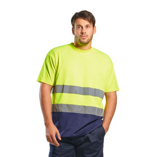 T-shirt dwukolorowy ostrzegawczy Cotton Comfort, niebieski/żółty