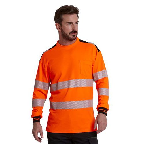 T-shirt ostrzegawczy PW3 z długim rękawem, czarny/pomarańczowy