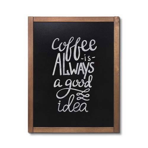Klasyczna tablica kredowa z lakierowaną na matowo ramą w kolorze teak, z wysokiej jakości twardego drewna sosnowego.