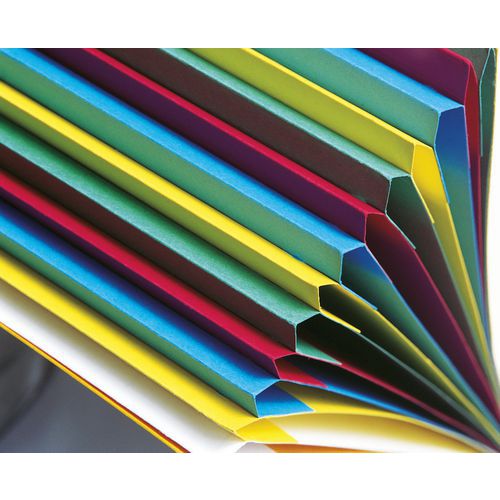 Organizery o dużej pojemności dzięki rozsuwanemu grzbietowi z klinem. Wysoka trwałość: wykonana z błyszczącej tektury z laminowanymi zakładkami. Przedziały można łatwo dostosować dzięki wycięciom w płytach.