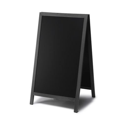 - Reklamowe tablice kredowe typu A, z wysokiej jakości twardego drewna bukowego oraz czarnej laminowanej płyty wiórowej.