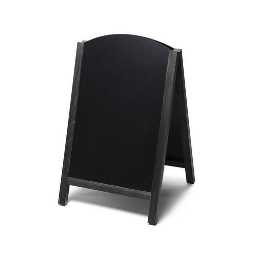 - Reklamowe wysuwane tablice kredowe typu A, z wysokiej jakości twardego drewna bukowego oraz czarnego laminatu wysokociśnieniowego.