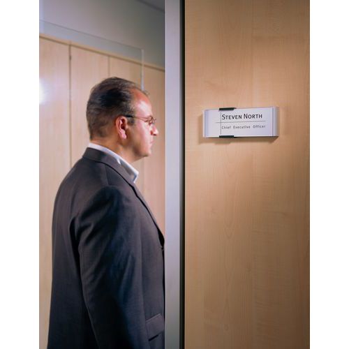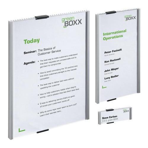 - Tabliczki informacyjne na drzwi Info Sign w różnych rozmiarach i umożliwiają zachowanie jednolitego stylu oznaczania drzwi w całym budynku.
