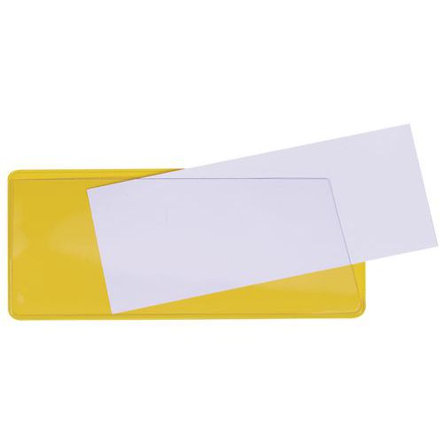 Samoprzylepne tabliczki informacyjne do opisywania i oznaczania regałów. Przednia przezroczysta plastikowa osłona do umieszczenia opisu lub etykiety. Łatwość umieszczania etykiety z boku. Opakowanie 100 szt.