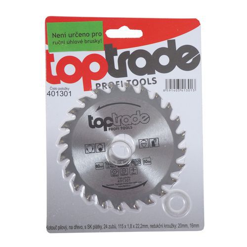 Tarcza do piły TOPTRADE, do drewna, z płytkami widiowymi, 24 zęby. 115 x 1,8 x 22,2/20/16 mm