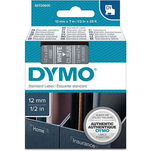 Taśma D1, szerokość 12 mm, przezroczysta
