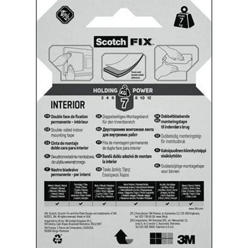 | Nazwa produktu | Taśma montażowa SCOTCH®, mocna, 19mm x 1,5m, biała |