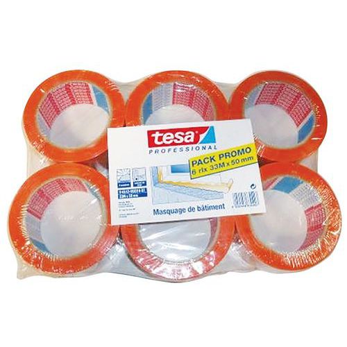 Taśmy klejące PVC budowlane Tesa 4843, 33 m, 50 mm, pomarańczowe