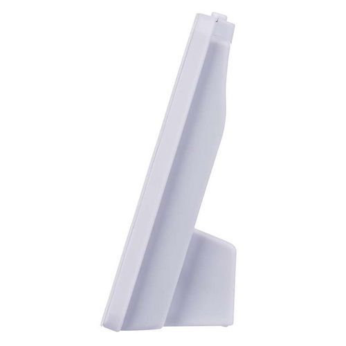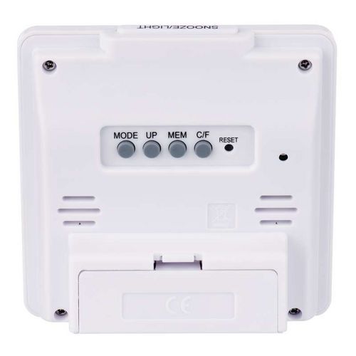 - Termometr w kolorze białym, z zegarem sterowanym mechanizmem kwarcowym.