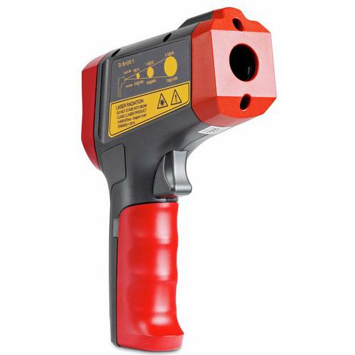 Funkcja alarmu granicznego z pamięcią pięciu wartości temperatury lub emisji, która uruchamia sygnał dźwiękowy i wizualny (trójkolorowa dioda LED) w przypadku przekroczenia lub przekroczenia limitu.
