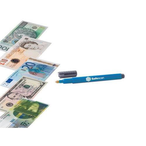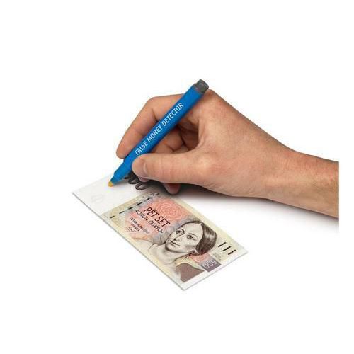 - Tester banknotów w formie długopisu do sprawdzania autentyczności banknotów, zasada działania na bazie chemicznej. Czas użytkowania wynosi około 10 000 zastosowań.